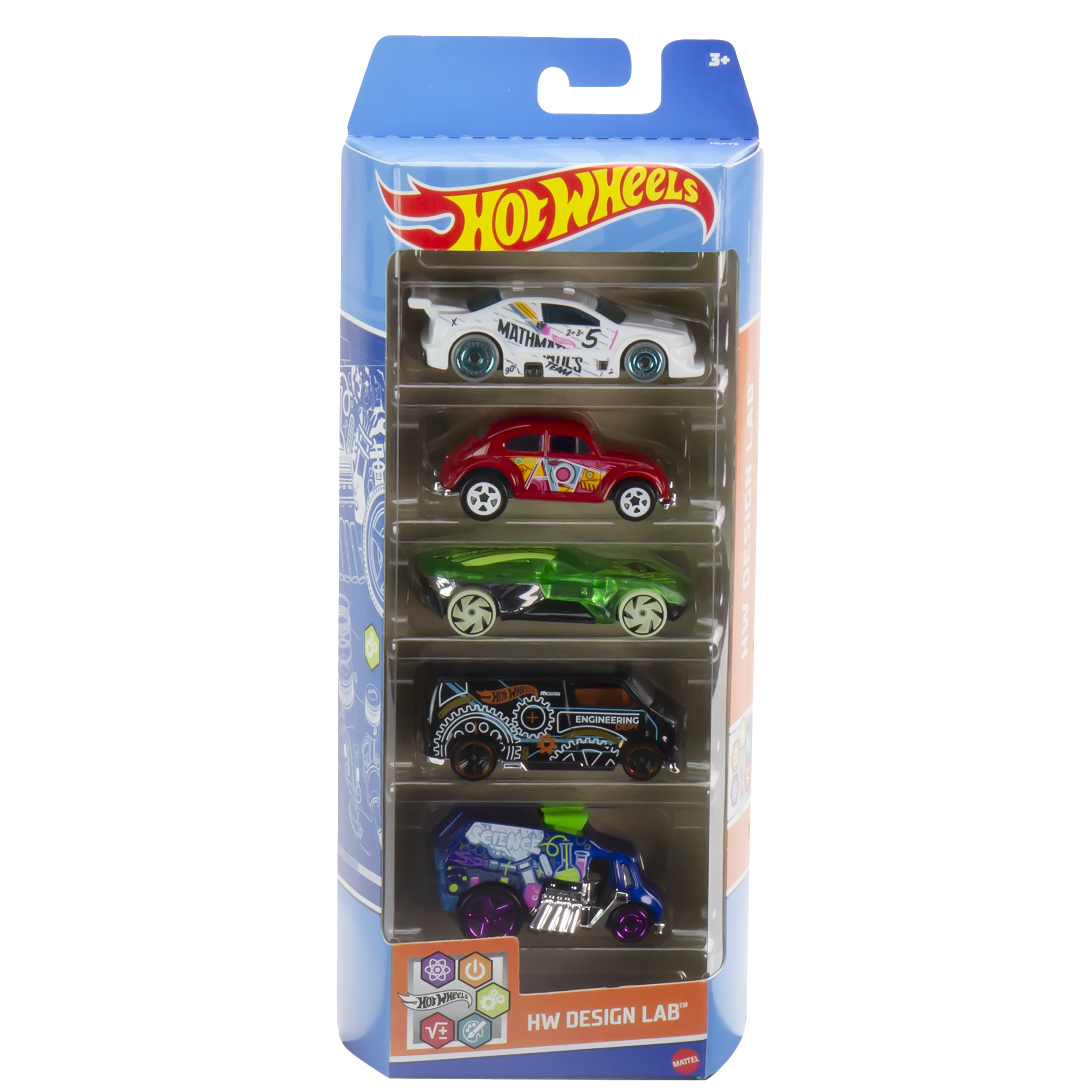 Ogni confezione include cinque veicoli Hot Wheels