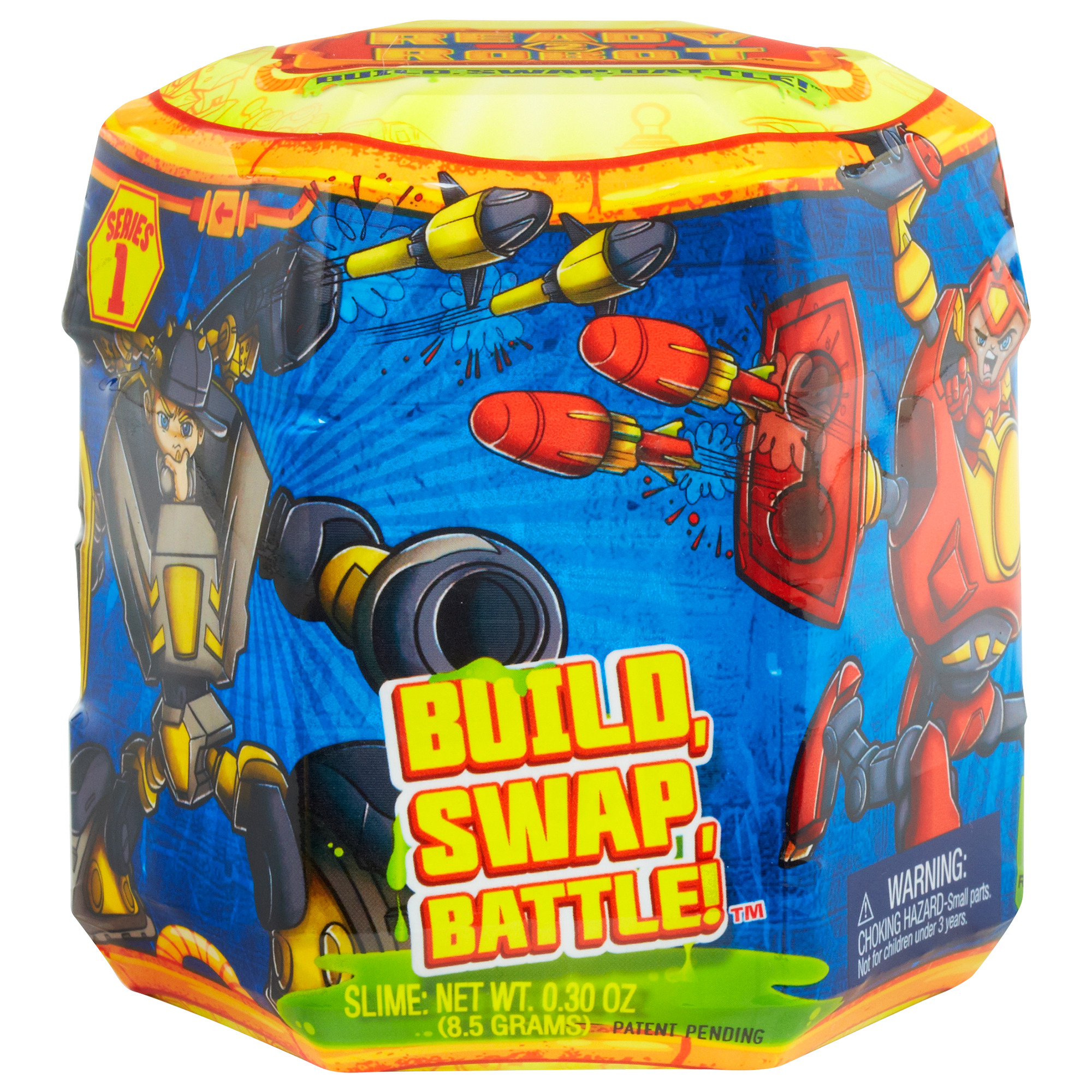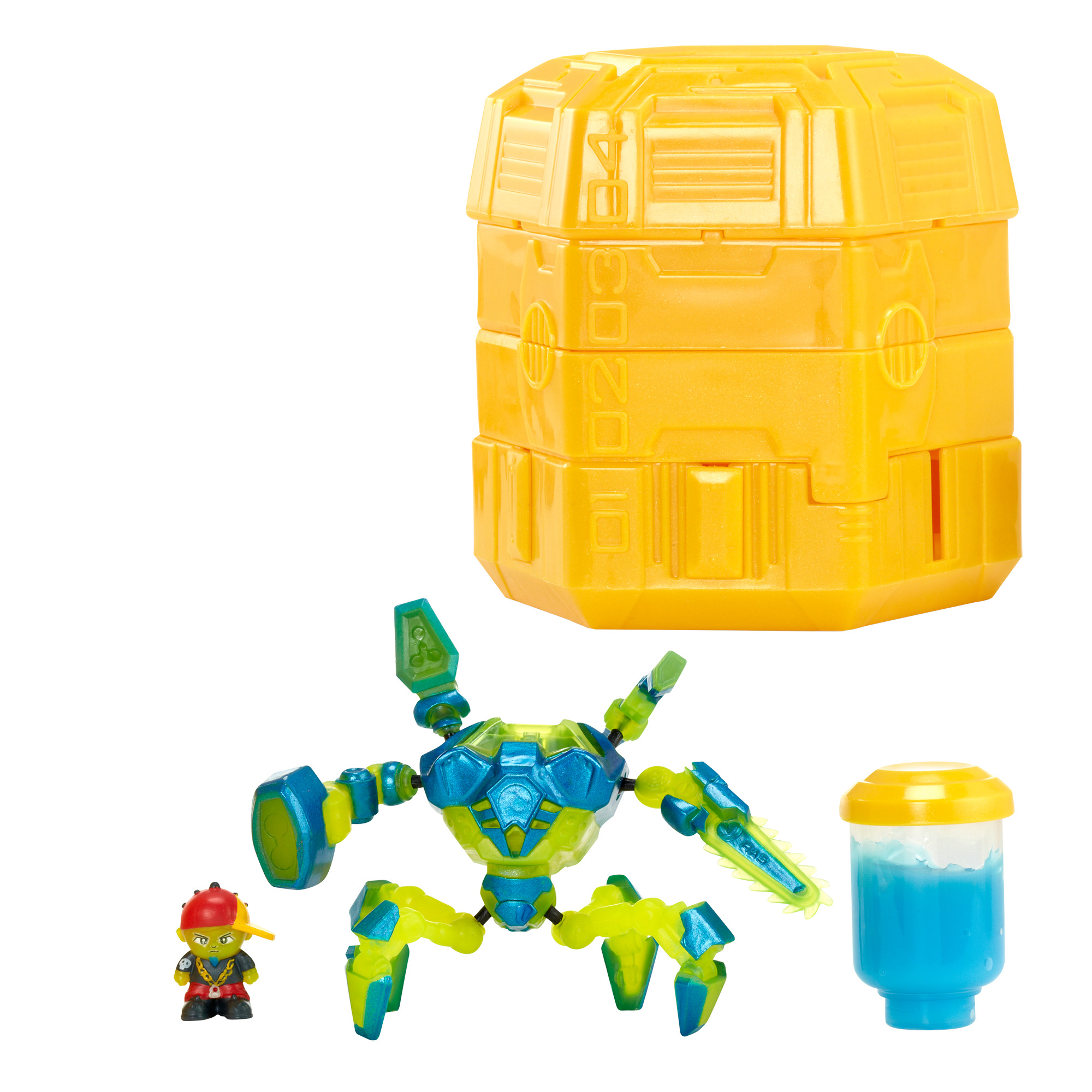 Ogni singola capsula include le parti del corpo del ROBOT, 1 pilota, lo SLIME e DUE ARMI! 18 personaggi da collezionare e un super personaggio rarissimo con funzione light up!